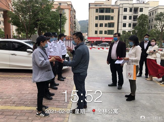 鄒湘斌一行先后來(lái)到康德萊酒店、新航酒店、金林公寓、新材料研究院、金山市場(chǎng)、智造大街、智能加速器、金鴻苑公租房、規(guī)劃展覽館、藝術(shù)中心、市民服務(wù)中心等項(xiàng)目,為堅(jiān)守一線的工作人員送去了節(jié)日慰問(wèn)品以及真誠(chéng)的祝福;給優(yōu)秀員工、崗位標(biāo)兵頒發(fā)了榮譽(yù)證書;檢查了安全生產(chǎn)工作和疫情防控工作落實(shí)情況,強(qiáng)調(diào)做好春節(jié)期間安全管理及疫情防控工作。
