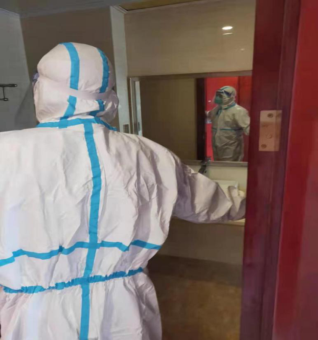 董事長詳細(xì)詢問了隔離酒店有關(guān)防疫措施、安保管理、醫(yī)療保障等情況,查閱了駐點(diǎn)工作臺賬,現(xiàn)場提出了防疫工作還需改善的事項(xiàng),要求盡快完善防疫設(shè)施、設(shè)備配套工作,部分醫(yī)學(xué)觀察區(qū)間要及時增加空調(diào),室內(nèi)外區(qū)域要加強(qiáng)消毒、消殺管理。