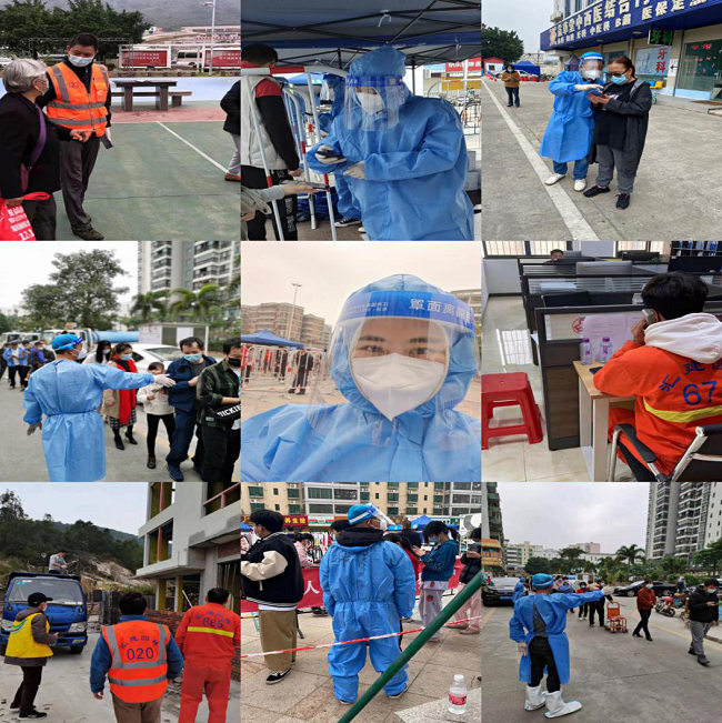 1月16-18日,全市“三天三檢”全面啟動。疫情就是命令,防控就是責(zé)任,聯(lián)港公司在區(qū)委區(qū)政府統(tǒng)籌指揮下,上下聯(lián)動、迅速響應(yīng)、主動應(yīng)戰(zhàn),織就了一張逾六百人的志愿服務(wù)隊(duì)伍網(wǎng),深入到航空新城和三灶、紅旗、南水、平沙各鎮(zhèn)、各社區(qū),與社區(qū)干部、核酸檢測隊(duì)伍同站一班崗、同守一條線,扛起國企黨員干部職工沉甸甸的責(zé)任和擔(dān)當(dāng),共筑防疫屏障。