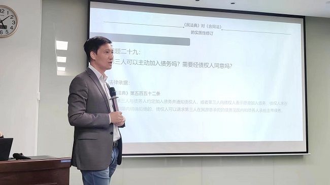 北京大成(珠海)律師事務(wù)所高級(jí)合伙人薛鵬律師以《民法典下合同實(shí)務(wù)研究》為主題貫穿培訓(xùn)課程,通過三十個(gè)常見的實(shí)務(wù)案例問題,詳細(xì)解讀了《民法典》對(duì)合同編作出的實(shí)質(zhì)性修改內(nèi)容,進(jìn)一步強(qiáng)調(diào)合同訂立、履行、變更、解除等管理工作重要性。參訓(xùn)人員積極互動(dòng)交流,提出實(shí)操過程中合同履約、風(fēng)險(xiǎn)控制等方面的疑問,切實(shí)化解工作中的難題。